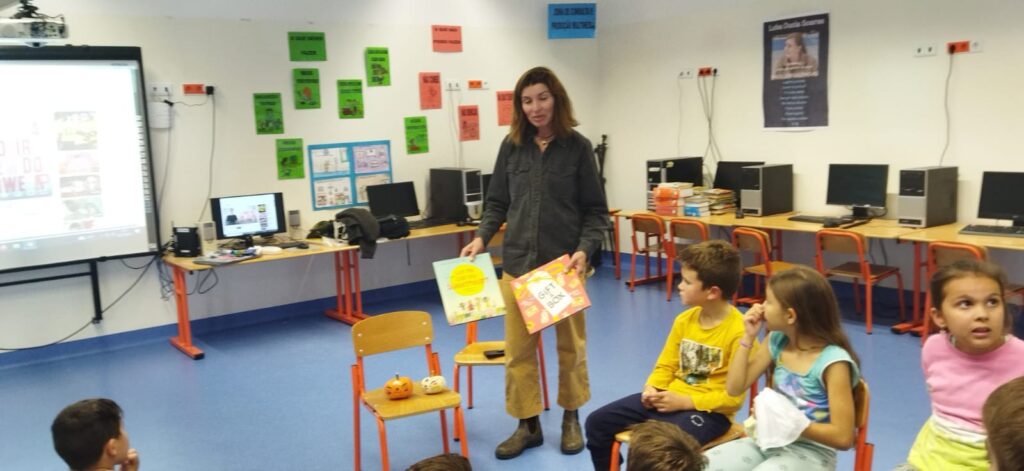 A ilustradora Brizida, também escritora e professora universitária, com currículo internacional, a passar uns dias de férias em Portugal, dedicou um pouco do seu tempo a realizar um “Workshop de Cabaças “, com os alunos do quarto ano. Foi um evento para comemorar o Halloween, criativo e divertido! Esta atividade foi possível com a colaboração de uma encarregada de educação, familiar da ilustradora. A Brizida gostou muito da participação dos alunos e disponibilizou- se para voltar , numa próxima visita a Portugal.