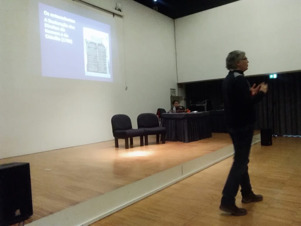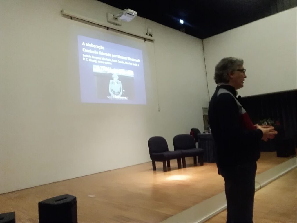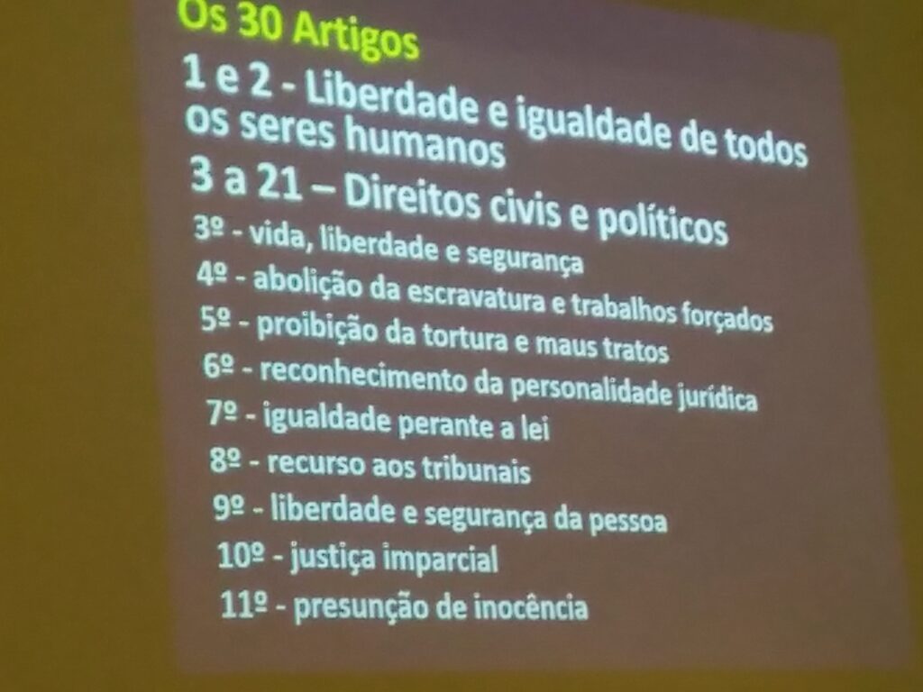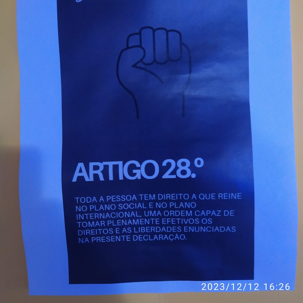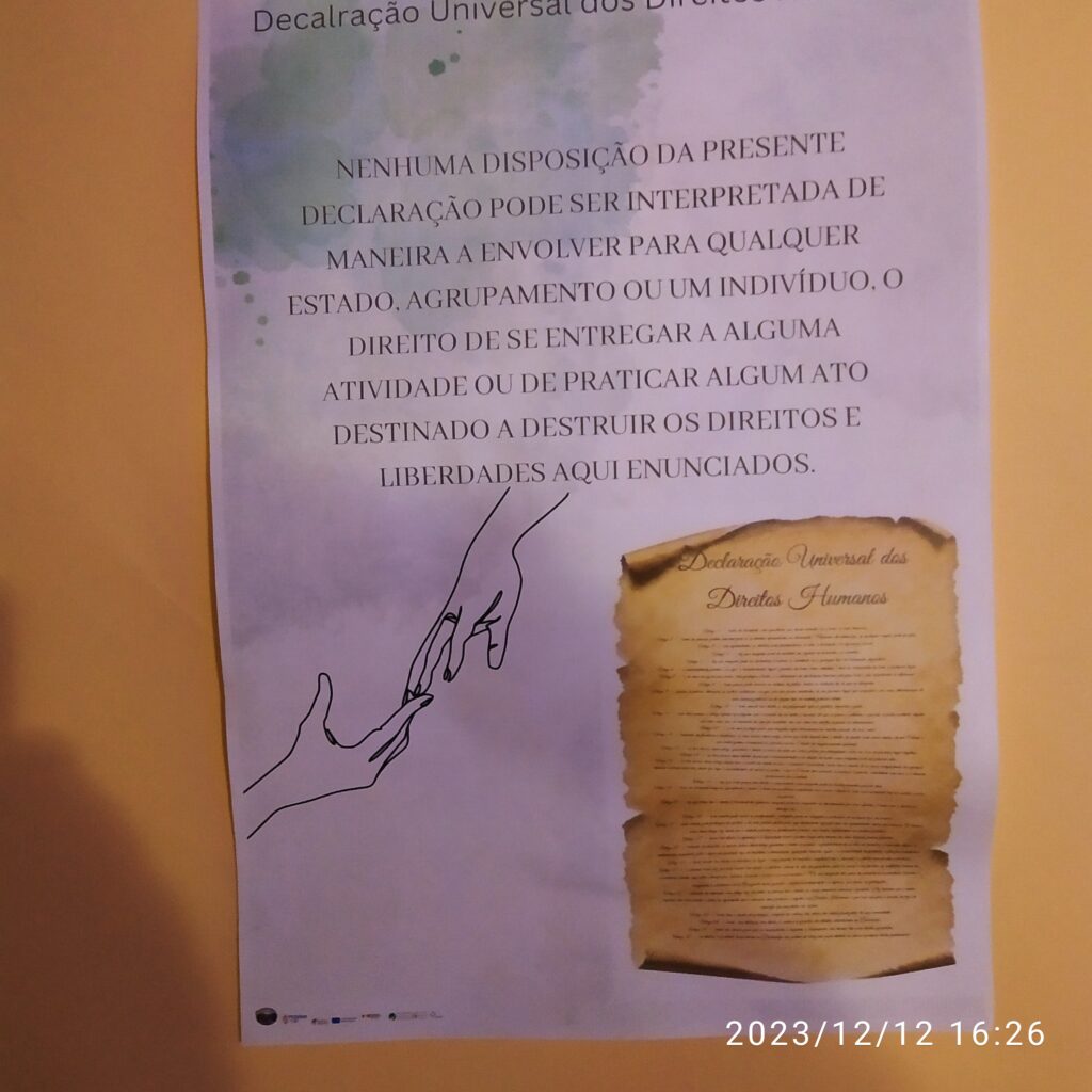 A Biblioteca Escolar promoveu, no âmbito dos 75 anos da Declaração Universal dos Direitos Humanos, um momento de partilha e de informação do papel da Amnistia Internacional, na defesa dos Direitos Humanos. 187 alunos do ensino secundário ouviram o profº Armando Borlido, representante da Amnistia Internacional em Viana do Castelo, numa sessão histórica da origem dos Direitos Fundamentais do Homem _ Carta Universal dos Direitos Humanos.