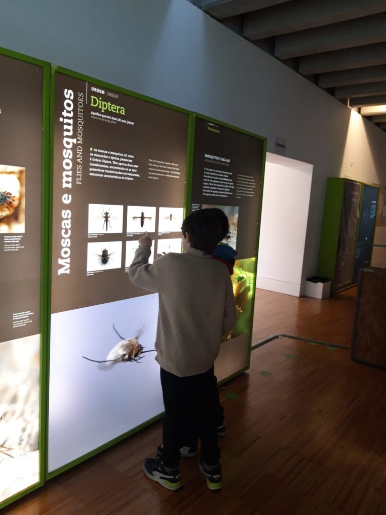 Ao chegarem à ESPL os alunos foram recebidos pelo professor Daniel Vilas Boas, que os recebeu muito bem e iniciou a visita a explicar como se identificam os insetos, destacando o número de pares de patas, de antenas e de asas… também relembrou que o inseto divide-se em cabeça, tórax e abdómen. Após as explicações introdutórias, em grupos de dois e munidos de um inseto, envolto em resina, os alunos lançaram-se no mundo dos insetos e na corrida ao nome e à