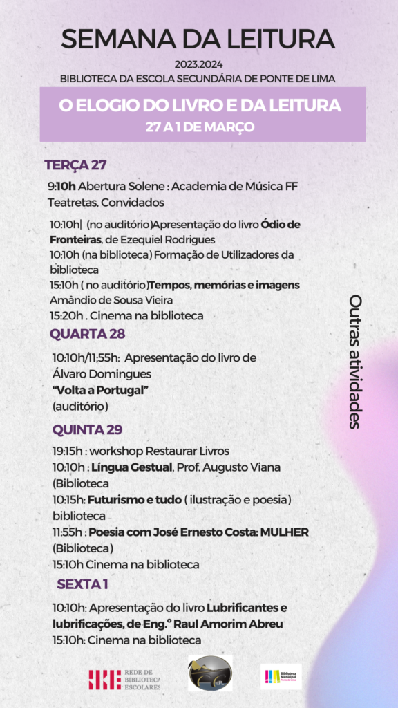 SEMANA DA LEITURA “O ELOGIO DO LIVRO E DA LEITURA” (27 de fevereiro a 1 de março)