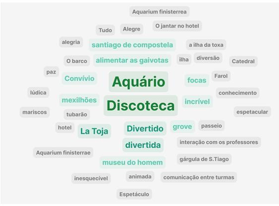A nuvem de palavras reflete a opinião dos alunos relativamente à visita de estudo.