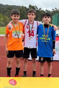Na prova do Salto em Comprimento, a Lara Lopes conseguiu chegar ao 3.º lugar no escalão de Iniciados Feminino. No mesmo escalão, o Gonçalo Caldas conseguiu o apuramento para a Final mas ficou no 8.º lugar. Nos Infantis A, quer em Masculinos, quer em Femininos, os nossos alunos estiveram simplesmente fantásticos. O Gustavo Martins e a Iva Calçada saltaram até à Final, tendo a Escola da Correlhã alcançado dois 1.ºs lugares neste escalão. Também nos Infantis B, a prestação dos nossos alunos foi brilhante. Mais dois alunos na Final e mais dois primeiros lugares. A Maria Fernandes na prova feminina e o João Pereira na masculina.