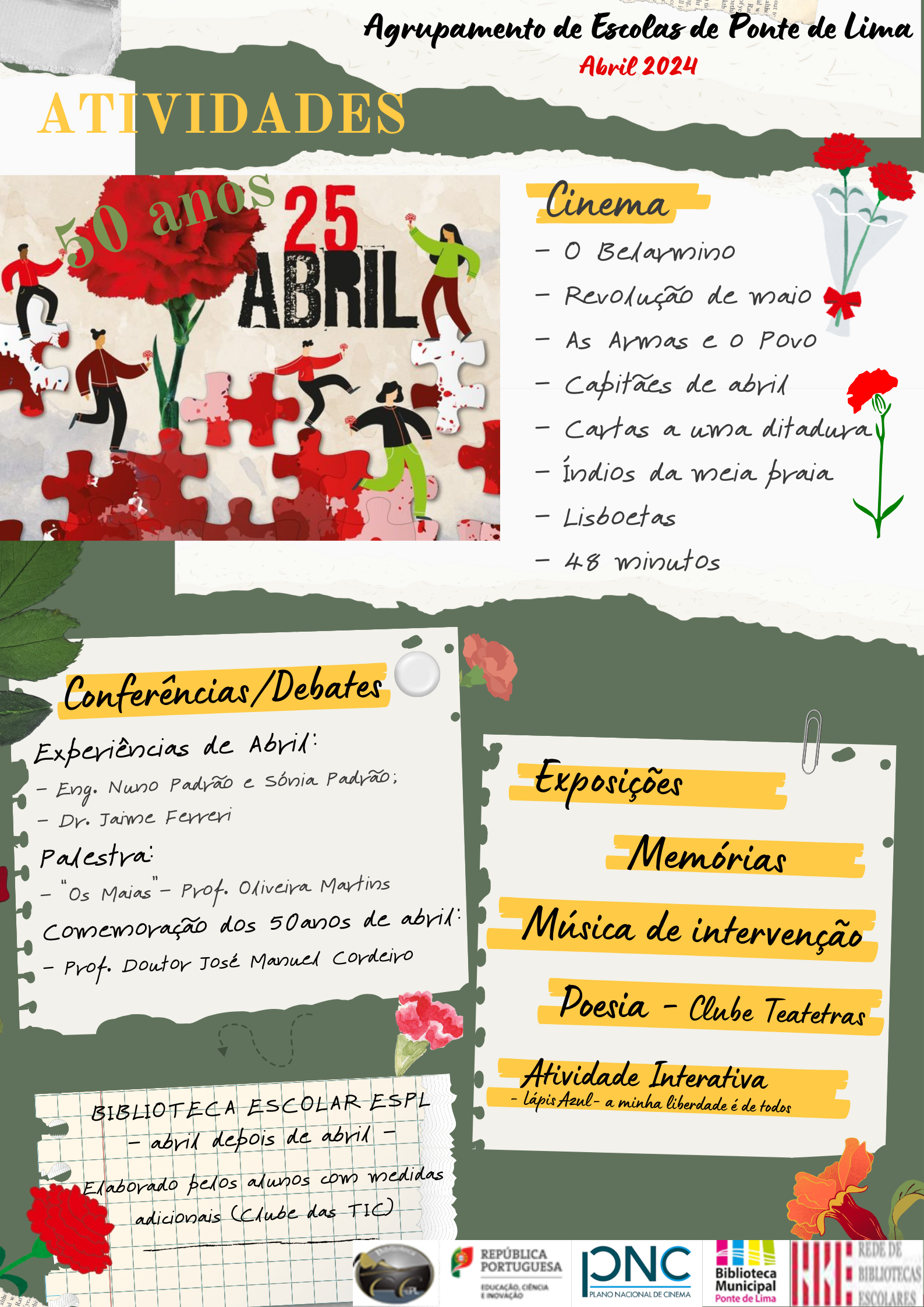 No âmbito das “Comemorações dos 50 anos do 25 de abril”, a Biblioteca Escolar promoverá um conjunto alargado de iniciativas, subordinado ao tema […]