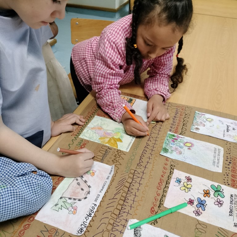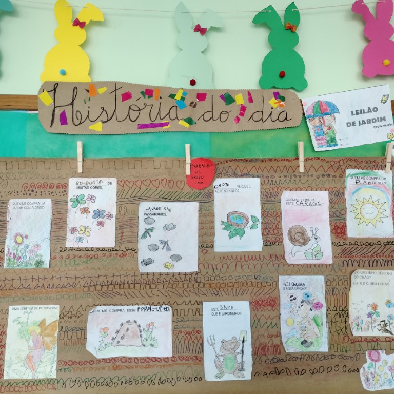 Sob o tema “primavera” foi criado um mural coletivo da árvore da primavera e explorada a história “Leilão de Jardim” de Cecília Meireles, resultando num cartaz de imagens e grafismo. Também tivemos visitas de alguns de animais “personagens” da história.