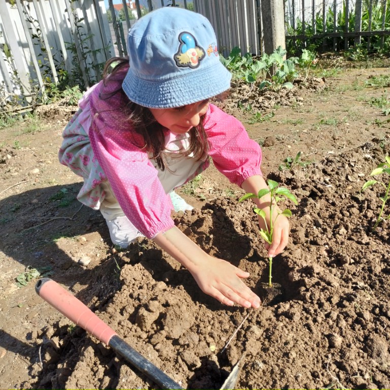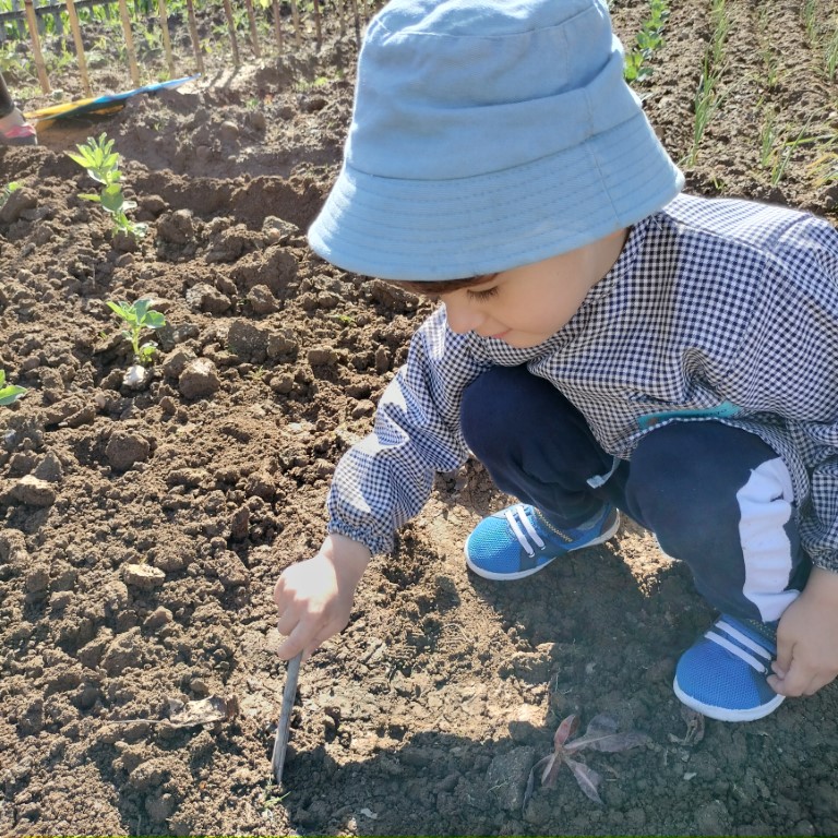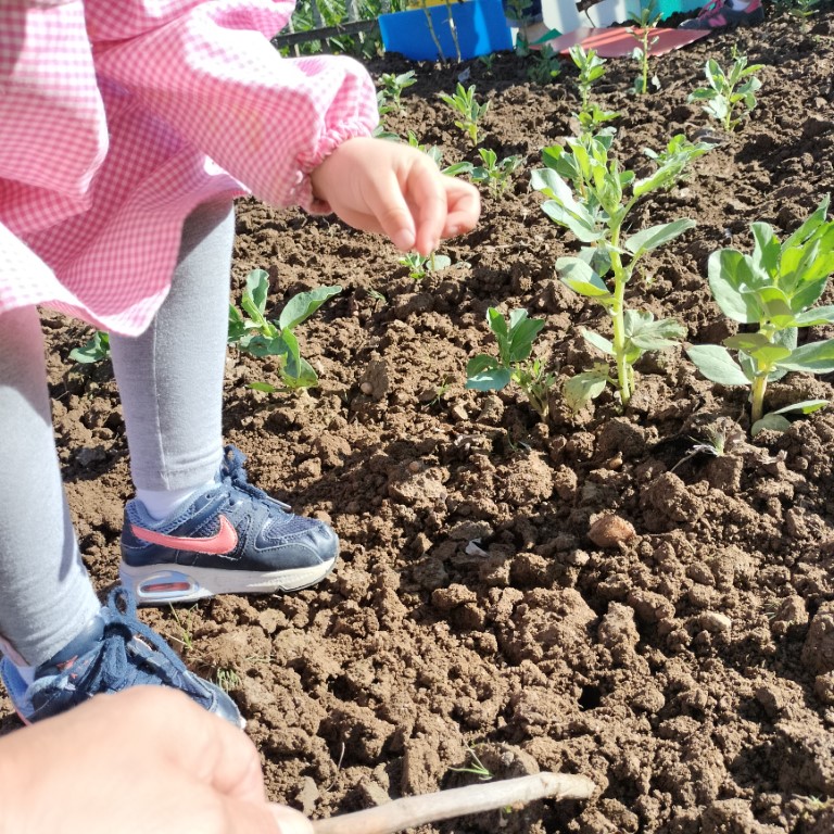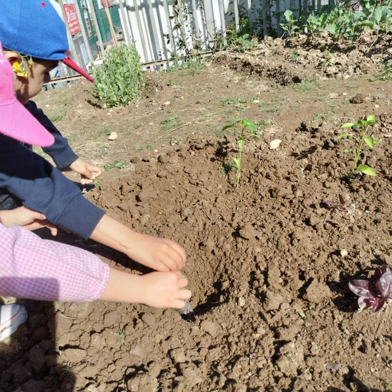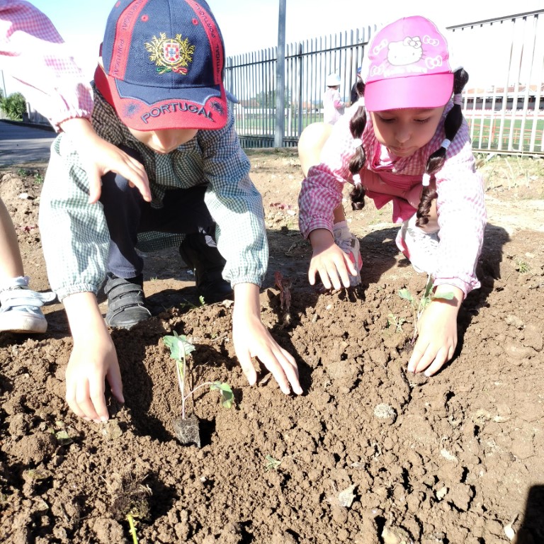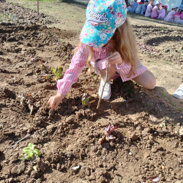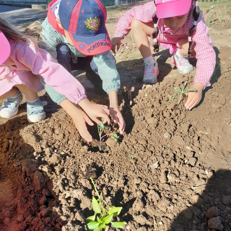 Fomos, ainda, trabalhar na horta. Semear feijões, plantar pimentos e brócolos. Está linda a nossa horta!