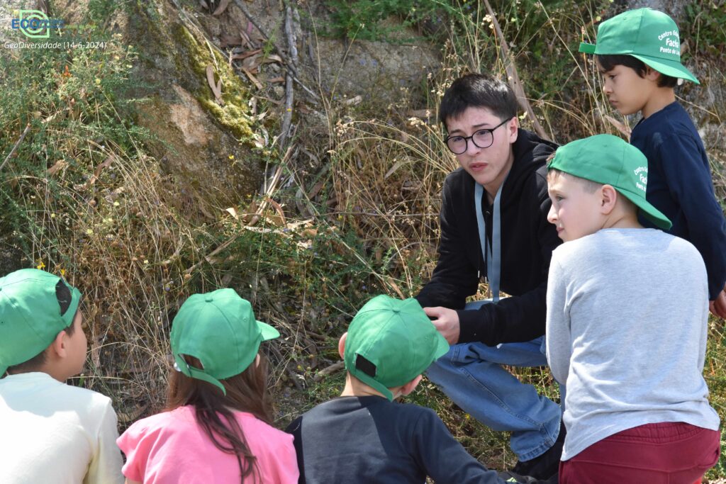 Os nossos “Geomonitores”, Inês Vilares (10ºA), Inês Fernandes (10ºB), Sara Freitas (10ºB), Nuno Vilas Boas (10ºA) e Gonçalo Martins (10ºA) conduziram os ”mais pequenos” na exploração das rochas sedimentares, magmáticas e metamórficas: Depósitos aluvionares, Granito alterado, Caos de blocos e Veios de quartzo (em xisto) foram os temas desenvolvidos no Caderno do Explorador <À descoberta das Rochas da nossa “terra”>. Como complemento ao “caderno de campo” foi também criado, e registado na aplicação Wikiloc, um geotrilho que se inicia no Centro Educativo e termina na Sr.ª da Rocha, Facha.