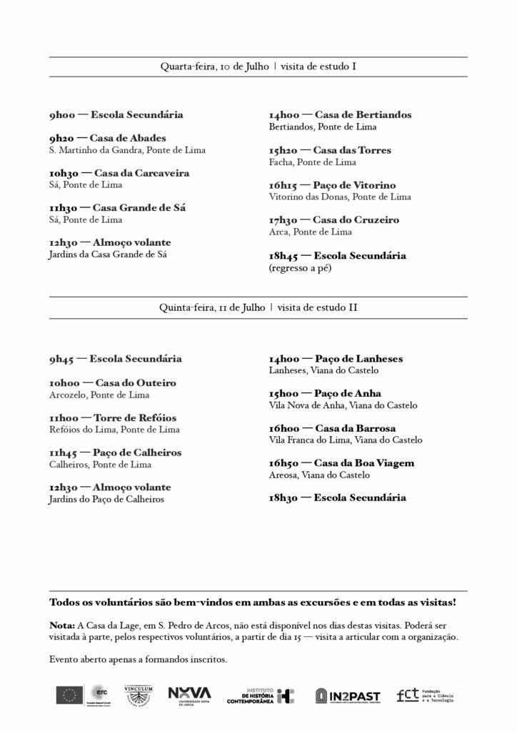 O momento mais alto deste projeto ocorrerá nos dois últimos fins de semana de setembro, período durante o qual os alunos aplicarão as competências adquiridas fazendo visitas guiadas a todos os interessados em conhecer as Casas históricas da Ribeira Lima.
