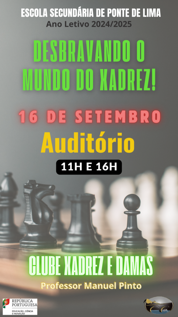APRESENTAÇÃO DO CLUBE DE XADREZ E DAMAS – 16 DE SETEMBRO (11H/16H)