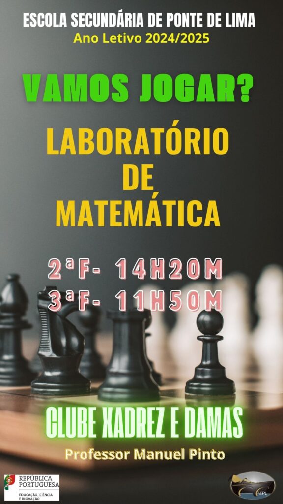 O Clube de Xadrez e Damas funcionará no Laboratório de Matemática (sala D) nos seguintes dias e horas: