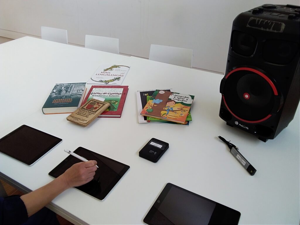 No espaço da biblioteca, a Professora Bibliotecária, o Diretor Pedagógico da Academia de Música Fernandes Fão e a coordenadora do CAA apresentam o Projeto Todos Juntos Podemos Ler aos alunos e professores das turmas envolvidas.