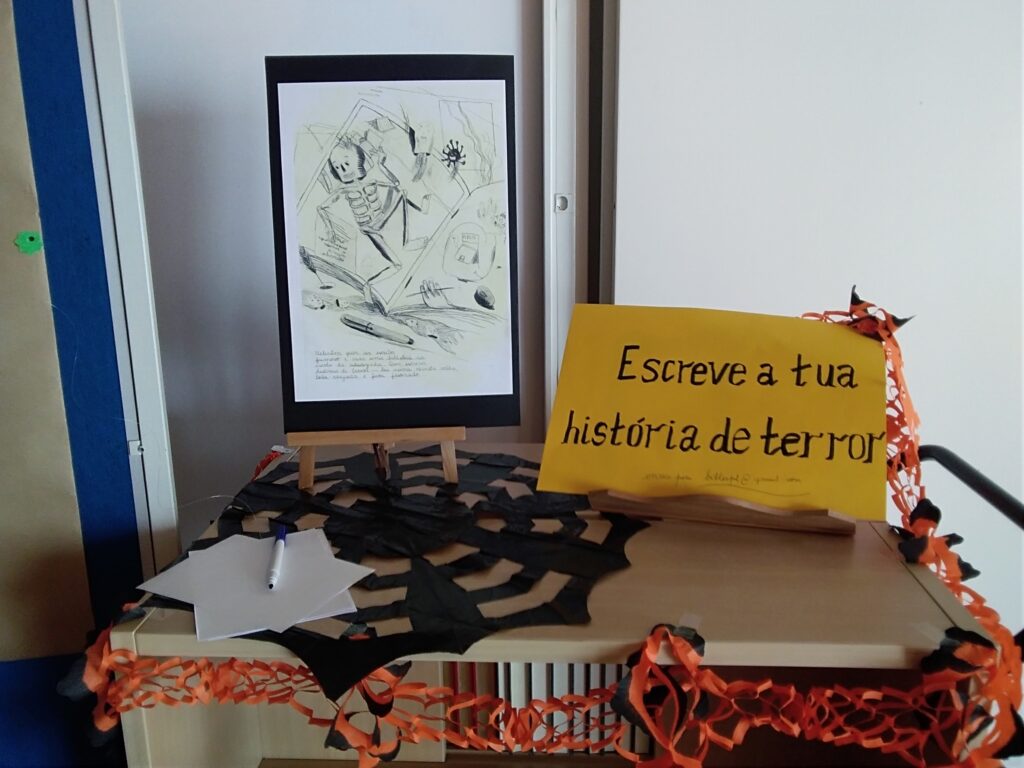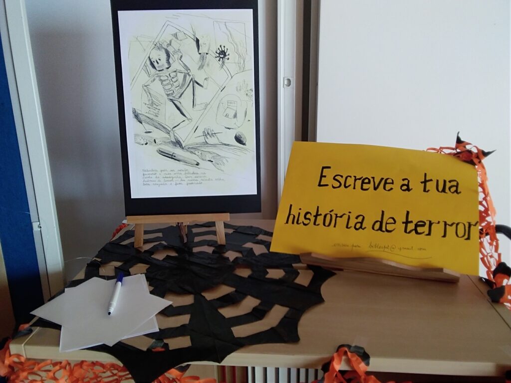 A biblioteca escolar lançou o desafio, e os alunos investidos de uma imaginação terrorífica, agarraram o desafio, com unhas, dentes, lanternas, ruídos tenebrosos, sombras e escreveram as suas “horror stories”. Deixamos aqui a escolhida na turma do 10ºP/N.