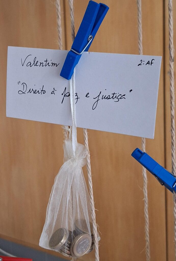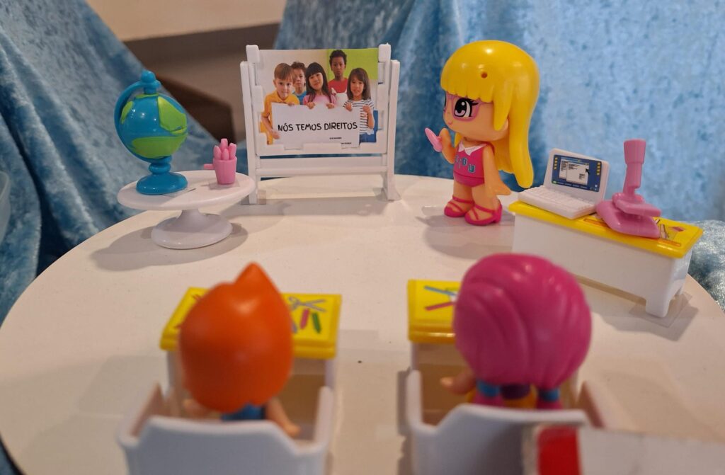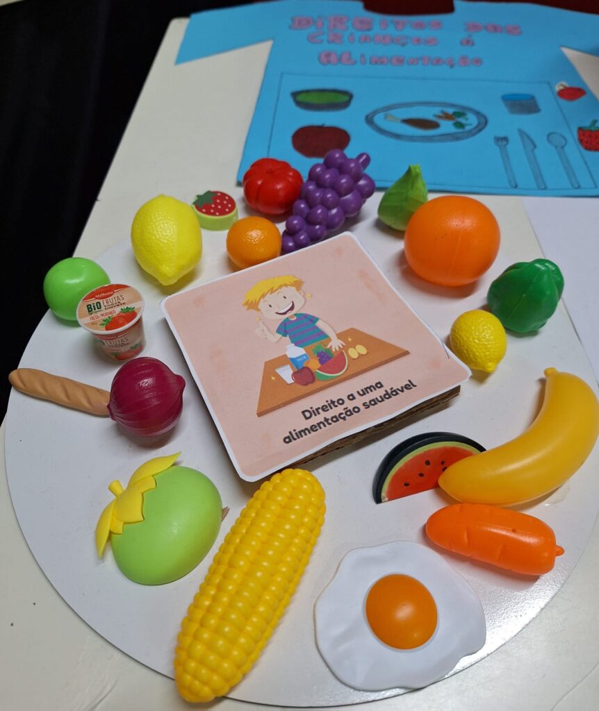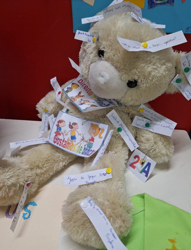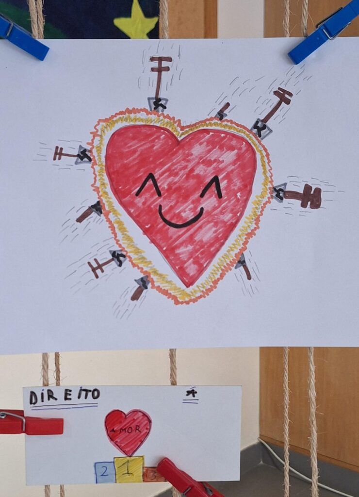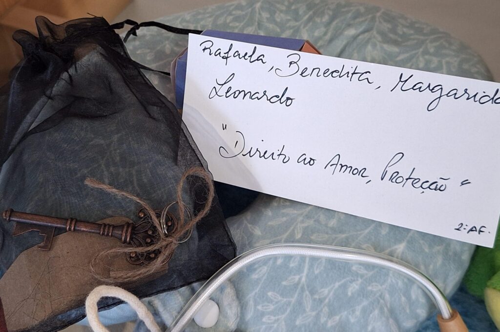 Cada turma/grupo/aluno nomeou um direito estipulado na convenção e representou-o através de um objeto à sua escolha.