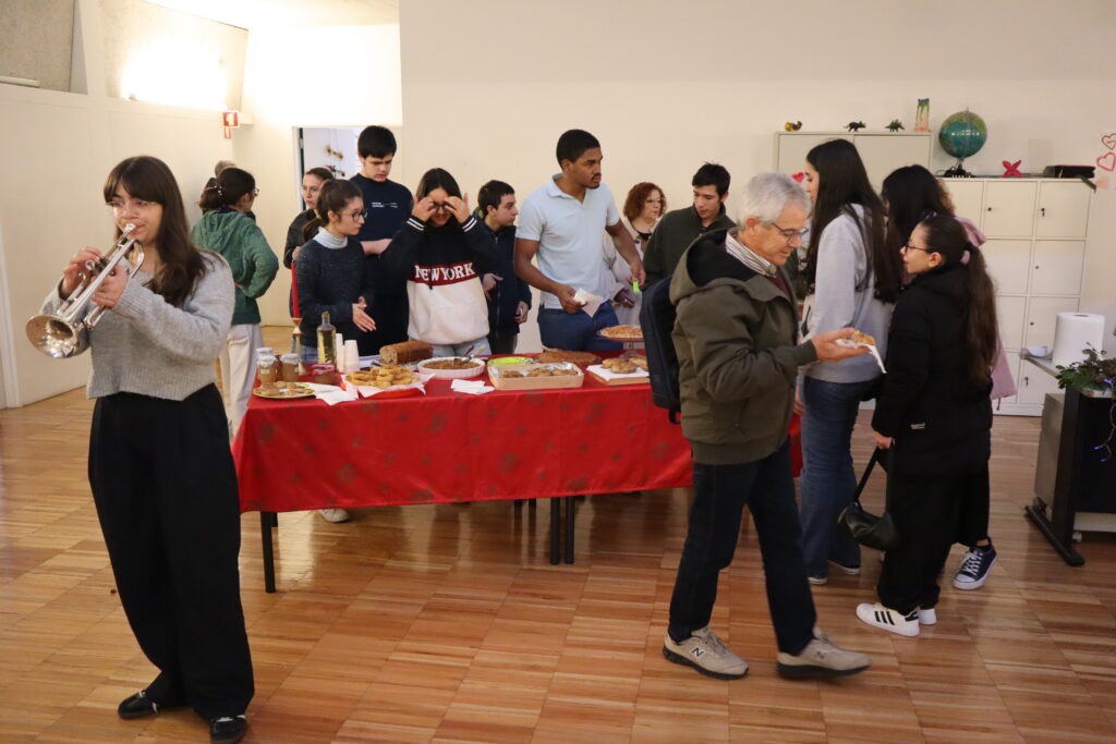 No âmbito da iniciativa “Natal da Partilha”, promovida pelo Curso Profissional Técnico Auxiliar de Saúde em colaboração com o GAAFE, decorreu no dia 17 de dezembro, em vários locais da ESPL, um conjunto diversificado de atividades (Feira da Partilha, Danças e Músicas do Mundo, Showcooking…) que pretenderam criar um ambiente mais inclusivo e fraterno.