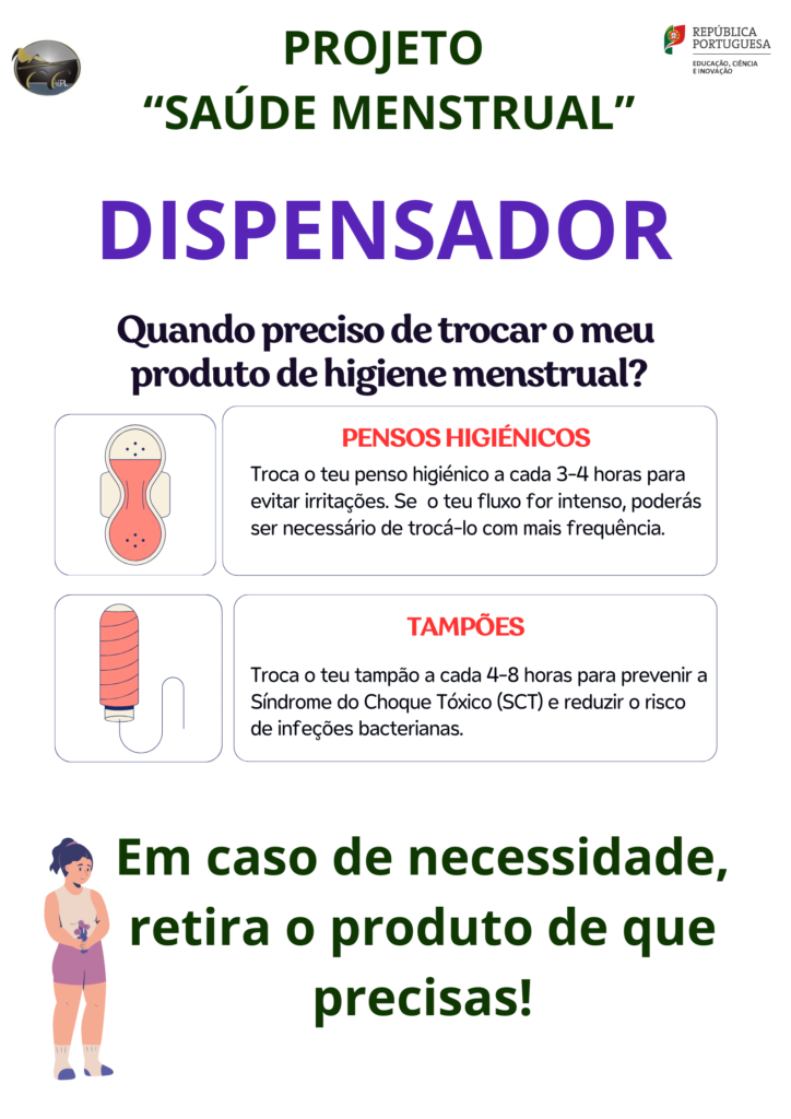 No âmbito do “Orçamento Participativo das Escolas 2023-2024” da ESPL, aprovado pelo Despacho n.º 436-A/2017, de 6 de janeiro, foi concretizado o projeto vencedor “Saúde Menstrual” que visava a melhoria das condições de acesso a produtos de higiene feminina (pensos higiénicos e tampões), através da colocação de dispensadores (bloco A, B e C).