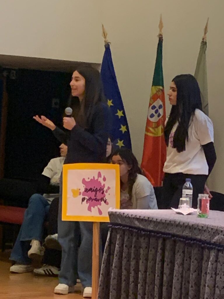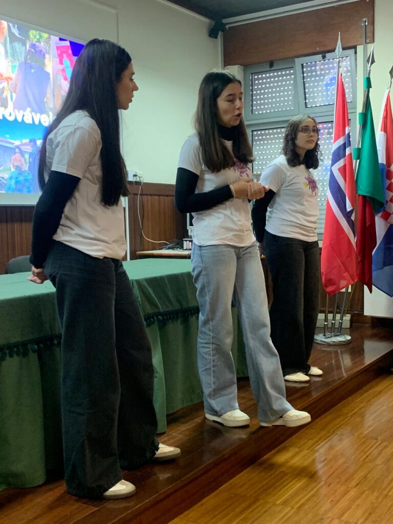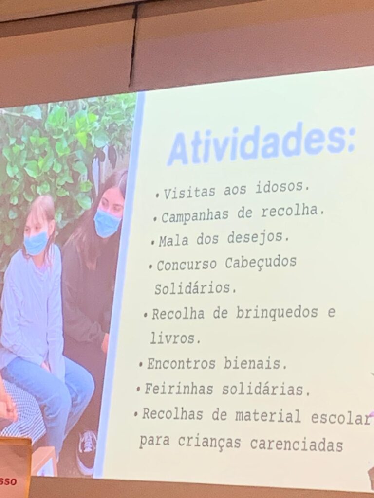 A sessão foi conduzida por um grupo de alunas envolvidas no projeto de voluntariado “Amigos Prováveis” da Escola Básica 2º e 3º Ciclo e Secundária de Arcozelo e Secundária de Ponte de Lima que desenvolve sobretudo ações de voluntariado junto de idosos de Ponte de Lima e pelo professor José Luís da Ponte que nos relatou a sua larga experiência na localidade de Cacheu, na Guiné Bissau.