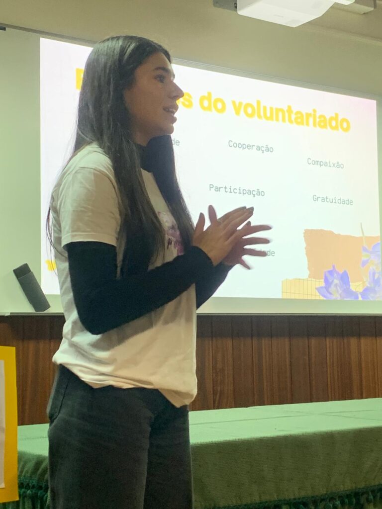 A apresentação foi enriquecida com registros fotográficos, vídeos e dinâmicas interativas que incentivaram a participação e o envolvimento dos alunos e estimularam o interesse pela temática abordada. Reforçaram a importância de cultivar valores como a empatia, a solidariedade e o compromisso social, incentivando os alunos a participarem ativamente em projetos de voluntariado.