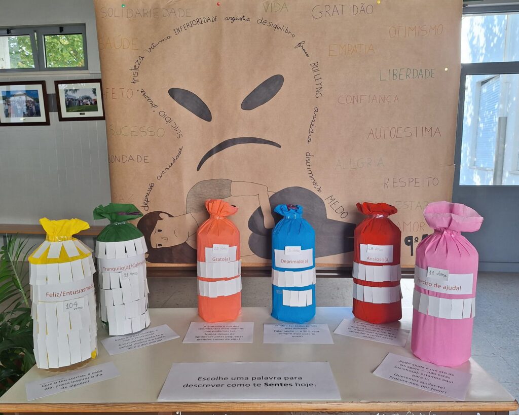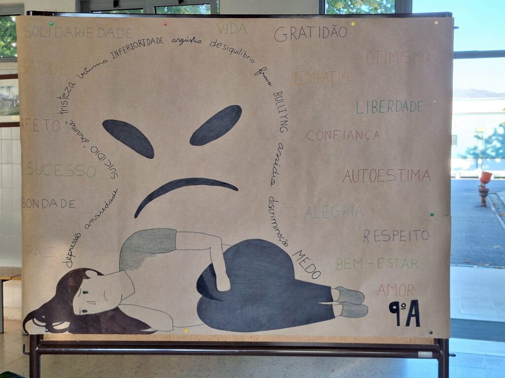 No final, os alunos do 12.º ano realizaram trabalhos criativos de sensibilização, que agora estão expostos na Learning, convidando toda a comunidade educativa a pensar, sentir e cuidar da sua saúde mental.