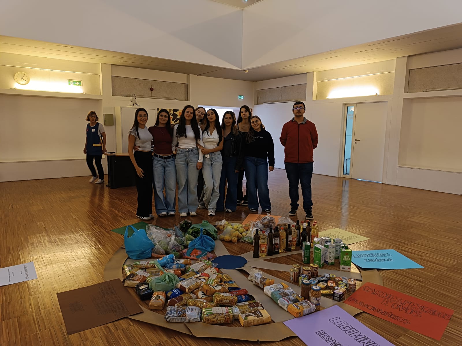 No âmbito da atividade comemorativa do Dia Mundial da Alimentação, com o tema “De mãos dadas por melhores alimentos e um futuro melhor”, os alunos do Curso de Técnico Auxiliar de Saúde, dinamizaram uma atividade envolvendo os colegas dos outros cursos profissionais, desafiando-os a trazer alimentos de um grupo específico da Roda dos Alimentos. Estes alimentos recolhidos foram doados à ONG Refood e os professores e funcionários também participaram na iniciativa! Foi também colocado um placard informativo junto ao bar dos alunos, assinalando esta data.