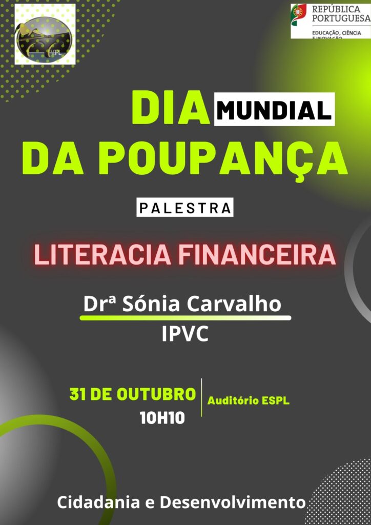 No âmbito da Educação para a Cidadania, o AEPL assinalou o Dia Mundial da Poupança, com a dinamização da palestra sobre Literacia Financeira, em parceria com o Instituto Politécnico de Viana do Castelo.