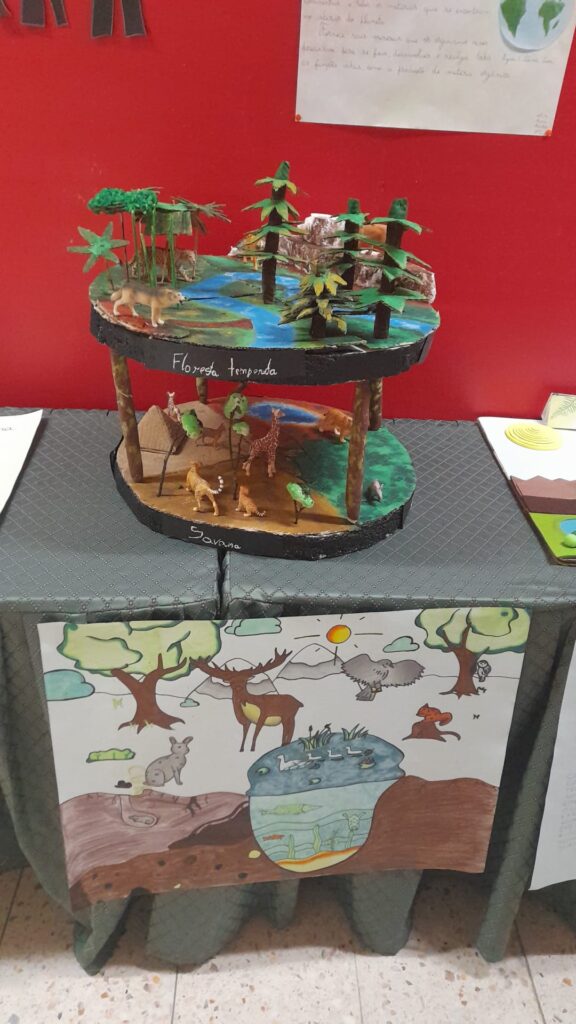 A exposição diz respeito aos vários subsistemas da terra, representados em maquetes e cartolinas.