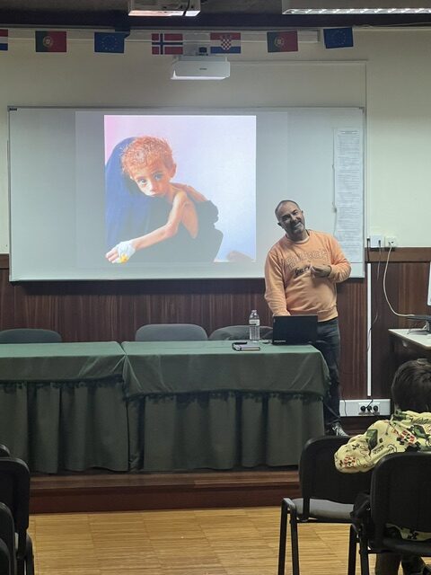 A sua palestra proporcionou uma viagem comovente e humanamente rica por realidades marcadas por profundos contrastes. Através de fotografias que ele próprio captou em países como o Paquistão, Afeganistão, Líbano, Somália, Haiti, Brasil e Peru, entre muitos outros, Dino centrou a sua intervenção em dimensões fundamentais dos Direitos Humanos: a alimentação, a habitação, a saúde e a educação.