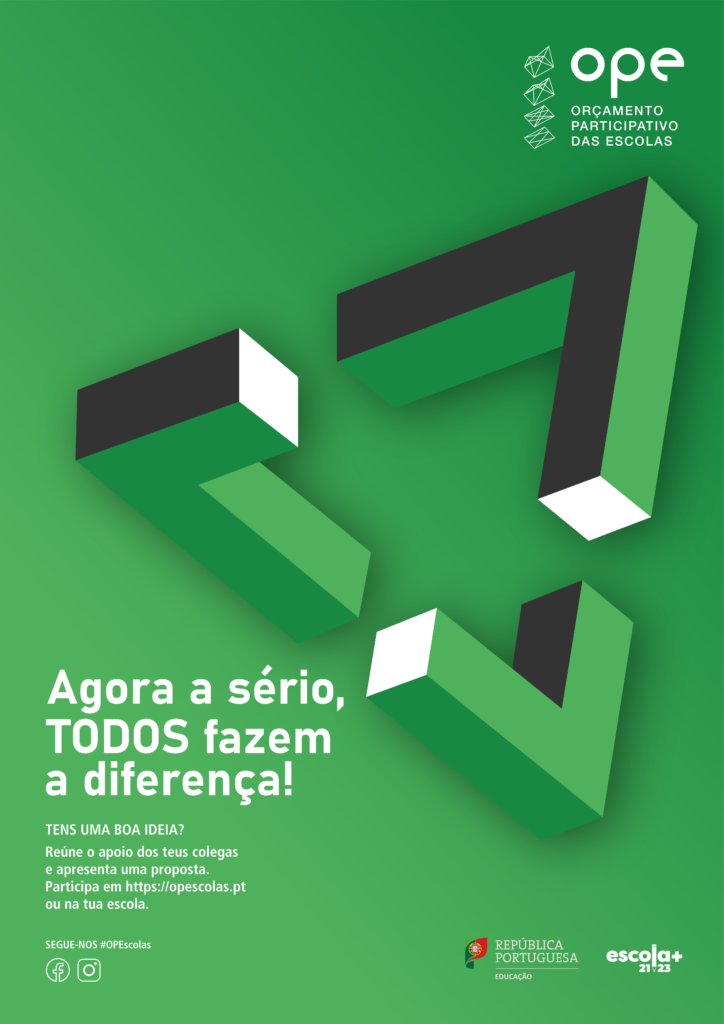 Assim, avisam-se todos os alunos do 3º ciclo que, nesta edição, até ao final do mês de fevereiro, poderão apresentar propostas que relevem para a Inclusão e Bem-estar, no âmbito da medida OPE-Inclui, do Plano de Recuperação das Aprendizagens (“Plano 21|23 Escola+”). Este projeto tem como principais objetivos, estimular a participação cívica e democrática dos estudantes, promovendo o seu espírito de cidadania e o diálogo, a mobilização coletiva em prol do bem comum e o respeito pelas escolhas diferentes, valorizando a sua opinião em decisões nas quais são os principais interessados e responsáveis, e, finalmente, permitindo o conhecimento do mecanismo do voto.