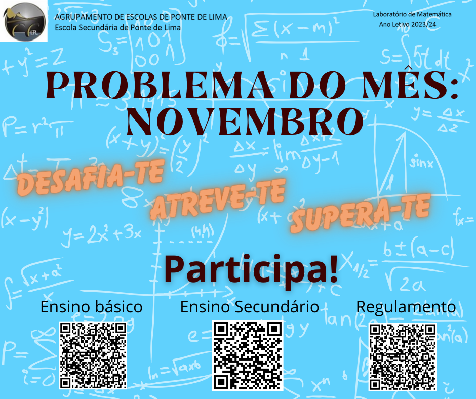 Participa no “Problema/Desafio do Mês” que todos os meses é dinamizado pelo Projeto “Laboratório de Matemática” da ESPL. O “Problema/Desafio do Mês” é […]